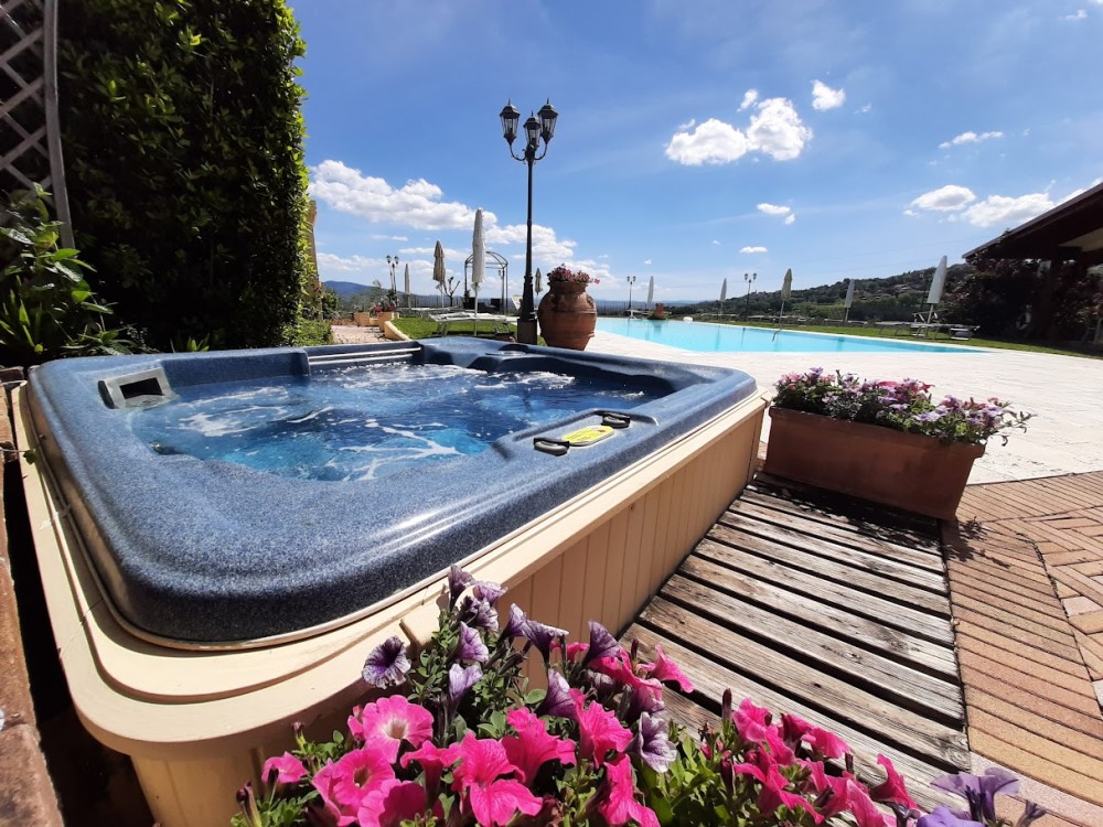 Piscina con acqua salata e vasca idromassaggio calda esterna